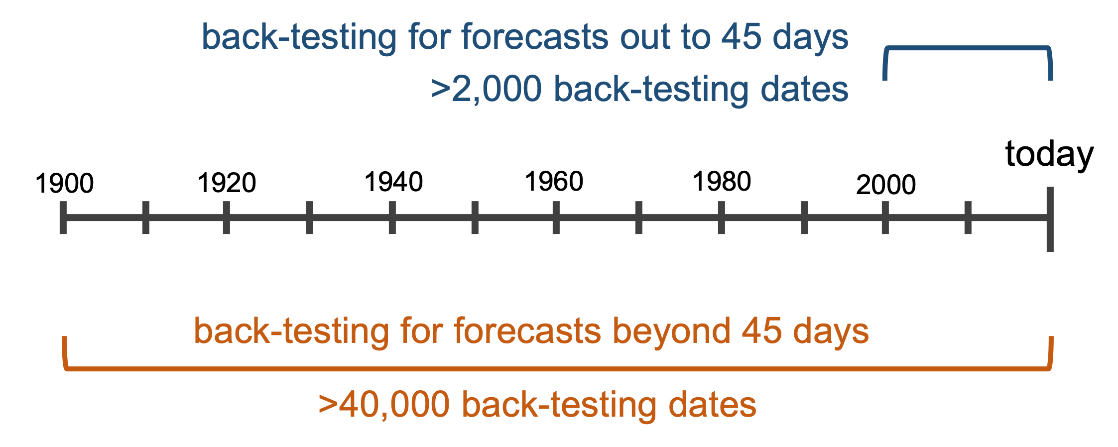 - Hourly weather data conditioned on each long-range forecast for input into commodities and agricultural production models