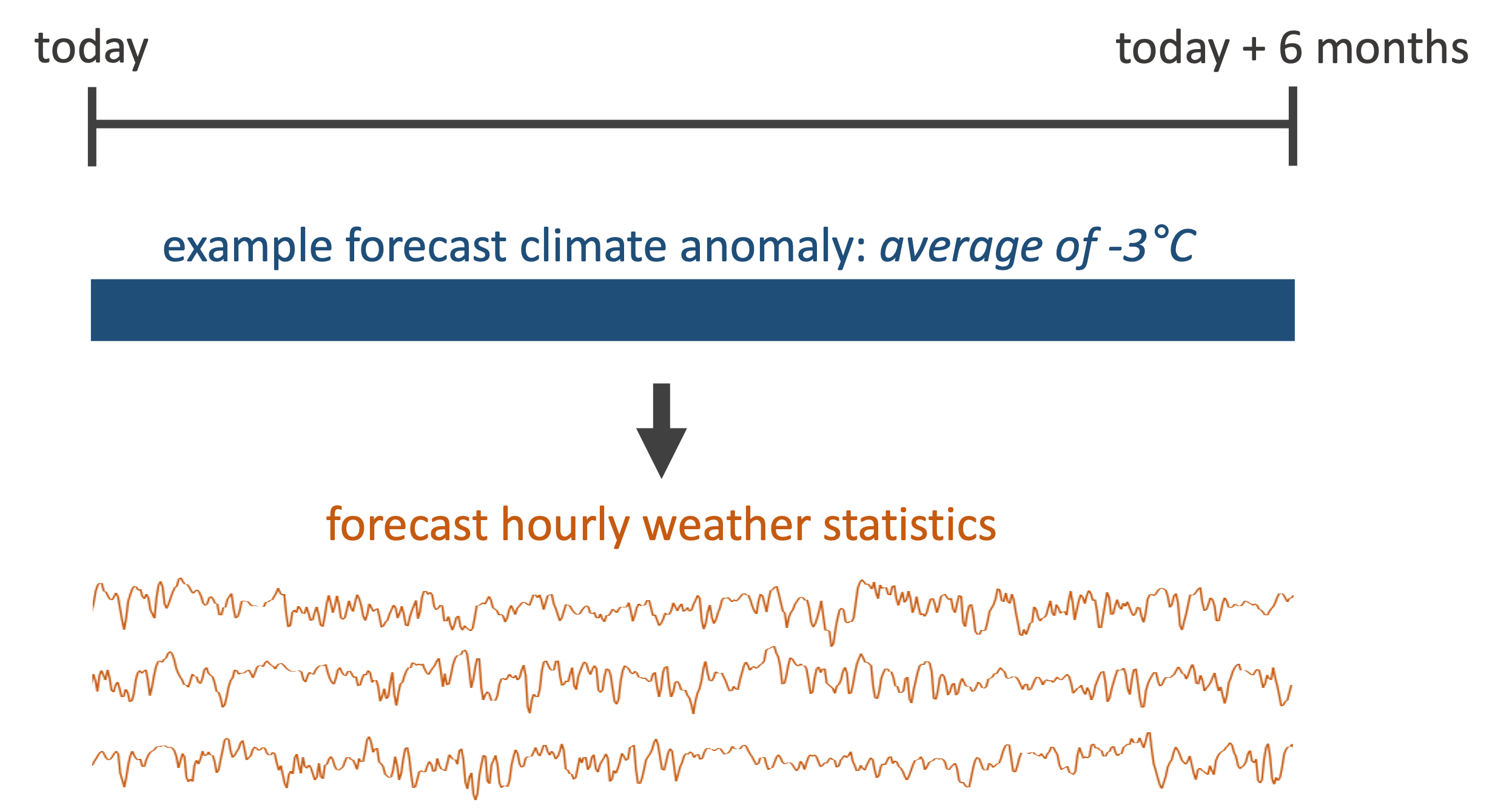 We convert our multi-week and multi-month forecasts into information about what may happen on hourly or daily timescales.